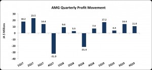 Earnings per share (EPS) for the year amounted to $0.09 versus a loss per share of $0.05), while the loss per share for the quarter was $0.02 (2018 EPS: $0.01). The number of shares used in our calculations amounted to 511,894,285 units. AMG last traded on October 16, 2019 at $1.90.