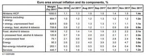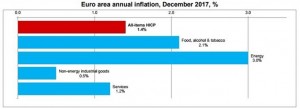 A further break down of the components of inflation reveals that energy is expected to have the highest annual rate in December (3.0%, compared with 4.7% in November). Other components such as ‘food, alcohol and tobacco’ which declined slightly from 2.2% in November to 2.1% for December, ‘services’ is expected to remain stable from the 1.2% reported in November. ‘Non-energy industrial goods’ rose from 0.4% in the previous month to 0.5% for December 2017.