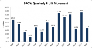 Earnings per share (EPS) for the period totalled $0.99 (2016: $1.23). EPS for the second quarter amounted to $0.31 relative to $0.57. The twelve-month trailing EPS is $1.92. The number of share used in our calculations amounted to 56,499,000 units. BPOW’s stock price close the trading period on November 22, 2017 at $44.03.