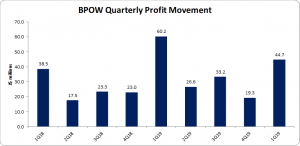 Earnings per share for the quarter totaled $0.08 (2018: $0.11), while for the trailing twelve months EPS was $0.15. The number of shares used in this calculation was 564,990,000 Notably, BPOW’s stock price closed the trading period on August 27, 2019 at a price of $9.48.