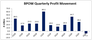 Earnings-per-share for the period amounted to $0.12 (2019:$0.21), while loss-per-share for the quarter amounted to $0.01 (2019: EPS $0.06). The twelve month earnings-per-share amounted to $0.07.The amount of shares used in our calculation is 564,990,000. Notably, BPOW stock price closed the trading period on March 03, 2020 at $4.56.