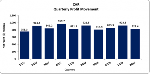 The Earnings per share (EPS) for the period was $0.32 as compared to $0.30 for the corresponding period of last year. EPS for the quarter amounted to $0.50 (2018: $0.50). The twelve-month trailing EPS amounted to $0.70. The number of shares used in the computations amounted to 4,854,400,000 units. CAR’s stock price last traded on November 13, 2019 at $8.73.