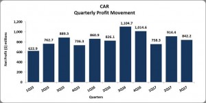 Profit before Income Tax was recorded at $3.35 billion relative to $3.74 billion in 2016. Following taxation of $837.52 million for the period (2016: $945.31 million), Net Profit Attributable to Shareholders amounted to $2.51 billion down 10% from the $2.79 billion booked last year. Profit attributable to shareholders for the third quarter amounted to $842.16 million compared to $1.10 billion booked in 2016