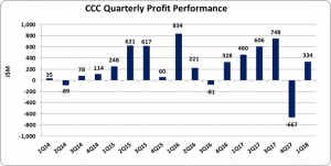 Earnings before interest, tax, depreciation & amortization (EBITDA) for the period amounted to $605.96 million, a decline of 11% relative to $684.34 million booked for the prior year’s corresponding period. CCC noted this, “This performance was mainly driven as a result of the scheduled annual maintenance of Kiln 5 and Mill 5, performed during February and March of 2018. Our investment in maintenance efforts will no doubt increase our operational efficiencies with the goal of driving exports, in due course.”