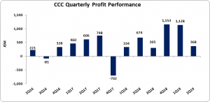 Interest Income amounted to $5.14 million for the period compared to $7.57 million for the corresponding period in 2018. Finance Costs for the six months closed at $856.84 million compared to $386.19 million incurred for the corresponding period of 2018. CCC noted this was attributed to, “higher interest expenses associated with the loan acquired on May 30, 2018, in connection to the acquisition of Kiln #5 and Cement Mill #5 have also been contributing factors”.