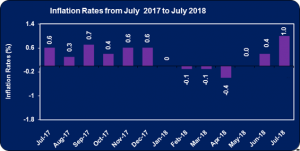 Notably, the other divisions ‘Alcoholic Beverages and Tobacco’, ‘Communication’ and ‘Education’ all recorded a negligible movement for July 2018.