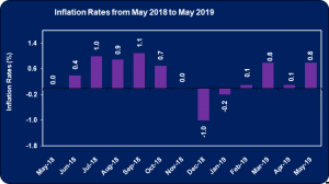 The divisions ‘Miscellaneous Goods and Services’, ‘Restaurants and Accommodation Services’ and ‘Recreation and Culture’ all recorded increases of 0.1% their respective index for May 2019. The increase within the division ‘Miscellaneous Goods and Services’ was attributable to “an upward movement in the prices for personal care items and visa fees” while the increase in the division ‘Restaurants and Accommodation Services’ was as a result of “increased prices for meals consumed away from home”.