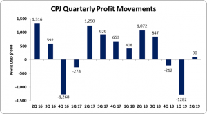Consequently, CPJ recorded a decline in gross profits to $13.47 million (2017: $14.39 million). Gross profits for the quarter also declined from $7.84 million in 2017 to $7.13 million.