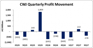 The company reported loss before tax of $470 million relative to profit of $942 million the year prior. Taxation for the period was reported at $218 million relative to $26 million for 2016. This resulted in a Net Loss for the period of $688 million relative to a Net Profit of $916 million the prior year. For the quarter the company reported a loss of $378 million a 91% increase over Net loss of $198 million reported in 2016.