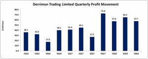 Derrimon Trading Limited (DTL), for the nine months ended September 30, 2018, reported consolidated trading income of $6.34 billion, increasing by 29% when compared to the $4.92 billion for the prior period. For the quarter, the Company reported a 23% increase in trading income totalling $2.18 billion relative to $1.77 billion in the previous corresponding quarter. The Company mentioned that, “The result reflects the first month of revenue from the new SM Jahleel Distribution agreement but excluded the 23 days revenue from Woodcats International Limited.”