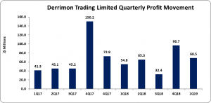 Consequently, profit before taxation grew by 47% ending the period at $84.57 million for the quarter compared to $57.57 million in 2018. Taxes of $10.57 million was reported for the period relative to nil the prior year. As such, Net Profit amounted to $74.0 million (2018: $57.57 million).