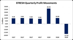Taxes of 8.27 million were charged resulting in a net profit of $19.08 million compared to $28.72 million for the corresponding period in 2017. However, for the quarter a net loss of $17.53 million was booked compared to a net profit of $9.28 million in the previous year. EFRESH stated, “margins contracted because of temporary competitive pressures.”