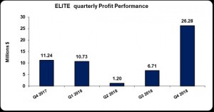 Profit before tax totalled $35.86 million compared to $59.56 million recorded last year, a 40% reduction year over year. ELITE reported an income tax credit for the year of $9.05 million compared to tax charges of $15.35 million recorded in 2017.