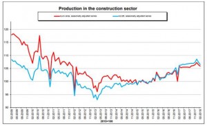 In February 2018 compared with January 2018, production in the construction sector decreased by 0.5% in the euro area (EA19) and by 0.8% in the EU28, according to a recent publication by Eurostat, the statistical office of the European Union. Activities in the construction sector is decreasing at a slower pace than in the previous month, January 2018, when production in construction fell by 0.8% in the euro area and by 1.1% in the EU28.