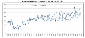 Over the two month period, January 2018 to February 2018, euro area exports of goods to the rest of the world rose to €356.2 billion (an increase of 5.9% compared with January-February 2017), while imports rose to €333.8 billion (an increase of 3.8% compared with January-February 2017). For the same period, January 2018 to February 2018, extra-EU28 exports of goods rose to €299.7 billion (an increase of 4% compared with January-February 2017), while imports rose to €316.8 billion (an increase of 3.6% compared with January-February 2017). Imports for the entire region increase at a higher volume than export, resulting in a deficit of €17.1 billion for January-February 2018, compared with -€17.5 billion in January-February 2017. However, Euro area (EA19) recorded a surplus of €22.4 billion for January-February 2018.