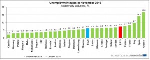 Euro area unemployment rate was 7.5% ,EU28 at 6.3% in November 2019