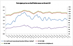 Figure 1: Petrojam, U.S. Gulf Coast Conventional Gasoline Regular and Brent Crude Oil Price History