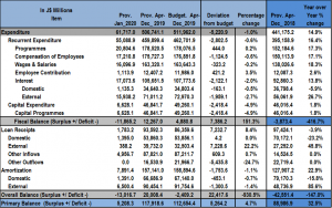 For the period of April to December 2019, the GOJ reported Total Revenues & Grants of $519.01 billion, $2.17 billion more than the Government’s projection. Furthermore, year over year, this represents an increase of approximately 18.7% relative to the $437.30 billion recorded for the corresponding period in 2018. ‘Tax Revenue’, ‘Capital Revenues’ and ‘Grants’ outperformed projections during the review period, while ‘Non-Tax Revenue’ underperformed projections during the period. ‘Tax Revenue’ amounted to $461.69 billion, $2.21 billion more than budgeted while ‘Capital Revenue’ of $832.9 million was reported; $6.60 million more than budgeted. Furthermore, ‘Grants’ totalled $4.28 billion, $102.30 million or 2.4% more than budgeted. ‘Non-Tax Revenue’ underperformed the budget by $154.50 million, amounting to $52.20 billion during the review period. Notably, no provisional amount was booked for ‘Bauxite Levy’ for the review period.
