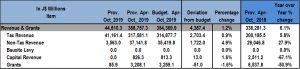 YTD, the government for the most part has outperformed its targeted revenue while keeping most expenditure line items below budget.