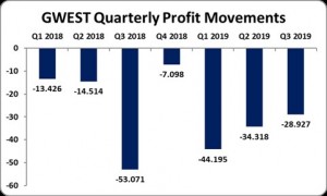 Loss per share (LPS) for the period amounted to $0.23 compared to and LPS of $0.17 recorded in 2017. The LPS for the quarter amounted to $0.06 relative to an LPS of $0.11 in 2017. The trailing-twelve-month LPS amounted to $0.25. The number of shares used in the calculations is 484,848,485. GWEST closed the trading period on February 15, 2018, at $1.44.