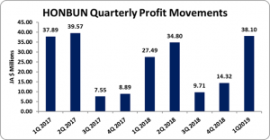 HONBUN noted that, “a reduction in the cost of raw materials and an improved production capacity contributed to the quarter’s performance.”