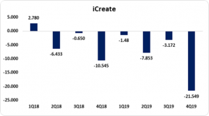 iCreate noted, “This was due primarily to lower than expected revenue in the fourth quarter as a result of the timing of a few contracts slated to finalize in the fourth quarter of 2019 which will not materialize until the first quarter of 2020”.