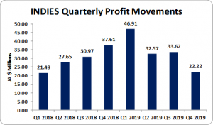 INDIES reported a profit before tax of $135.31 million relative to the $139.24 million reported in 2018.