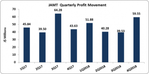 Jamaican Teas Limited (JAMT) reported a 14% increase in revenues to total $1.77 billion (2017: $1.55 billion). For the quarter, revenues amounted to $422.17 million (2017: $357.64 million). JAMT highlighted that, “the Company’s focus on driving revenues in our core business resulted in fourth quarter revenues from our manufacturing operations growing 20 percent for both exports and domestic sales. Supermarket sales increased by 9 percent.”