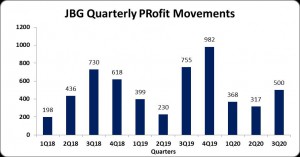 JBG reported a nine months finance income of $36.46 million (2019: $328.41 million), a decline of 89% year over year. According to JBG, “Finance income for the Group, showed a reduction of $291 million compared to last year resulting from reduced foreign exchange gains and reduction in interest income from the WIP loan, which was sold during the first quarter of this financial year.” Finance costs for the nine months amounted to $758.06 million relative to $728.59 million reported in 2019.