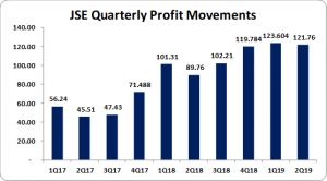 As such, JSE reported a net profit of $245.37 million for the six months compared to a profit of $191.07 million for the prior year, an 28% advance. Net Profit for the quarter had a 36% increase to total $121.76 million compared to $89.76 million the year prior. JSE highlighted, “this represents an improvement of $32 million (36%) when compared to the profit of $89.80 million for the corresponding period in 2018. Improvement in net profit continues to be positively impacted by increased market activities and impact of JSEG diversification strategies.”