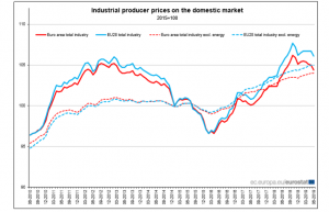 “In the EU28, industrial producer prices grew by 1.5% for capital goods, by 1.4% for both durable and non-durable consumer goods and by 0.5% for intermediate goods, while prices in the energy sector fell by 0.9%.” Whereby, prices in total industry excluding energy rose by 1.1%.
