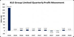 K.L.E. Group Limited (KLE), for the nine months ended September 30, 2018 reported Revenue for the period of $162.67 million, relative to $158.19 million last year. For the third quarter revenue totalled $52.63 million, relative $54.46 million last year, a 3% decline. This was due to the major road work happening on Constant Spring Road as well as there were fewer guest visiting the restaurant when compared with the similar period in the prior year.