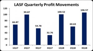 Despite the increase in total expenses, profit from operations grew by 56% to total $467.02 million, relative to the $300.28 million recorded last year. Profit from operations for the quarter improved 78% to close at $163.09 million (2017: $91.48 million).