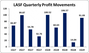 After taxation of $38.66 million (2018: $31.04 million), Net Profit for the quarter amounted to $91.09 million which was a 9% decline from the prior period’s net profit of $100.52 million.