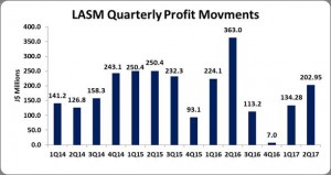 Consequently, LASM recorded operating profits of $450.91 million, 40% lower than the $753.67 million booked in 2016. Operating profit for the quarter declined 41% to $267.30 million (2016: $456.48 million).