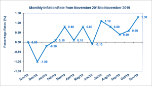The divisions ‘Recreation and Culture’ and ‘Alcoholic Beverages’ recorded increases of 0.1% and 0.2% in their respective index for November 2019. The divisions ‘Miscellaneous Goods and Services’ produced an increase of 0.2% for November 2019. According to STATIN, this was as a result of, “the upward movements in the price for some personal care products and some personal items.” Notably, the division ‘Restaurants and Accommodation Services’ registered a 0.3% rise for November 2019, due to, “increased costs for accommodation and meals consumed away from home.” Lastly, a 0.5% expansion was documented in the ‘Transport’ division due to, “higher costs for some petrol and related products and higher prices for air travel.” Notably, the division ‘Communication’ had no effect on the index for November 2019.