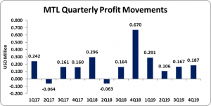 Consequently, operating profit for the year ended declined by 30% to $750,580 (2018: $1.07 million). Profit for the year ended amounted to $750,245 (2018: $1.07 million). The twelve-months earnings per share was $0.011 compared to $0.016.The number of shares used in our calculations was 67,500,000. MTL closed the trading period on July 30, 2019 at US$0.25 while MTLJA closed the trading period on July 30, 2019 at J$32.21.