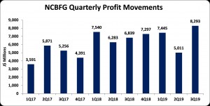 Earnings per share (EPS) for the nine months ended June 30, 2019 totalled $8.41 relative to $8.38 booked for the comparable period of 2018. The EPS for the third quarter amounted to $3.36 (2018: $2.77). The trailing twelve month EPS amounted to $11.37. The number of shares used in our calculations amounted to 2,466,762,828 units. NCBFG stock price closed the trading period at a price of $217.05 on July 25, 2019.
