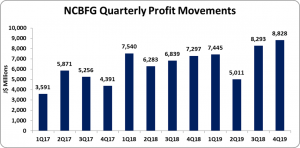 Net Fees and Commission Income amounted to $19.18 billion, an increase of 21% on 2018’s $15.86 billion. NCBFG indicated, “the improved performance stems from the consolidation of GHL coupled with growth in transactions in our wealth and payment services (card acquiring and issuing) business segments.” Dividend income increased by 130% to a total of $1.27 billion (2018: $553.31 million). Other Operating Income increased 84% to $1.11 billion (2018: $605.45 million) while Credit impairment losses increased 146% to $4.82 billion in contrast to $1.96 billion recorded for 2018. Lastly, the Company’s Gain on foreign currency and investment activities declined 5% to $14.80 billion compared to $15.61 billion reported in 2018.