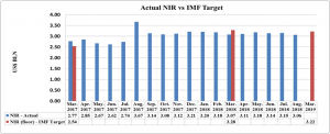All performance criteria for the period ended December 2017 were met. The IMF further noted, “Financial sector stability is a prerequisite for strong and sustained growth. Ongoing prudential and supervisory improvements will enhance systemic stability.” “Continued reform implementation will not only safeguard hard-won gains but also deliver stronger growth and job creation.” The Net International Reserve (NIR) target outlined as per the new agreement for the 2018/19 fiscal year is US$3.22 billion (see figure 2 above). As at August 2018, the Country is US$0.16 million below targeted amount.