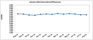 Jamaica’s Net International Reserves (NIR) totaled US$2,936.45 million as at August 2019, reflecting a decline of US$14.90 million relative to the US$2,951.35 million reported as at the end of July 2019 (see figure 1).