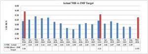 The Net International Reserve (NIR) target outlined as per the new agreement for the 2019/20 fiscal year is US$3.155 billion (see figure 2 above). As at August 2019, the Country is US$0.20 million below targeted amount.