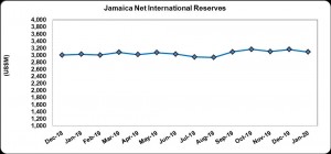 Jamaica’s Net International Reserves (NIR) totaled US$3,094.25 million as at January 2020, reflecting a decrease of US$68.29 million relative to the US$3,162.54 million reported as at the end of December 2019 (see figure 1).