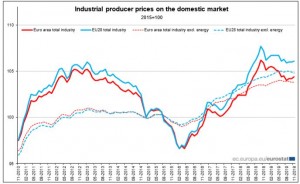 “In the EU28, industrial producer prices decreased by 5.2% in the energy sector and by 1.1% for intermediate goods, while prices rose by 1.4% for both capital goods and durable consumer goods and by 1.8% for non-durable consumer goods.” Whereby, prices in total industry excluding energy climbed by 0.4%.