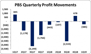 Direct expenses increased 9% to close the period at US$24.83 million when compared to $22.77 million for the same period of 2018. As such, gross profit for the period under review marginally declined to close at US$18.72 million (2018: US$18.75 million). PBS stated that, “the gross profit associated with the incremental revenue was offset by the impact of revenue mix.”