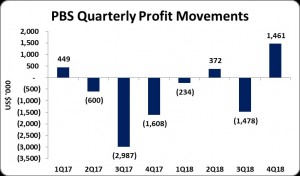 As at December 30, 2018, PBS had total assets totalling US166.86 million (2017: US$160.46 million) which represents a marginal increase of 4%. This movement was mainly attributed to a 14% and 17% growth in ‘Property, Plant, and Equipment’ and ‘Trade and Other Receivables’ respectively to US$23.19 million and US$50.98 million respectively.