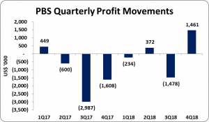 As at December 30, 2018, PBS had total assets totalling US166.86 million (2017: US$160.46 million) which represents a marginal increase of 4%. This movement was mainly attributed to a 14% and 17% growth in ‘Property, Plant, and Equipment’ and ‘Trade and Other Receivables’ respectively to US$23.19 million and US$98 million respectively.