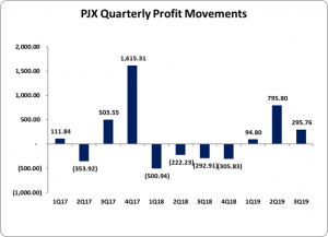Earnings per share (EPS) for the period amounted to US$0.0038 (J$0.52) compared to the loss per share of US$0.0033 (J$0.42) reported in 2018. PJX’S twelve months trailing EPS is US$0.003. The number of shares used in this calculation was 309,968,261. PJX’s stock price closed the trading period on January 15, 2020 at J$9.00.