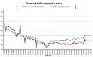 The contraction of 0.4% in the euro area for October 2017, compared with September 2017, was attributed to building construction falling by 0.5% civil engineering by 0.3%. for the EU28 the decline was as a result of building construction falling by 0.8% and civil engineering by 0.1%. Among the member states, the largest decrease in production in construction were Sweden (-2.1%), the United Kingdom (-1.6%), Germany and Romania (both -1.3%), and the highest increases in Slovenia (+8.5%), Hungary (+5.9%) and Slovakia (+5.7%), based on data available.