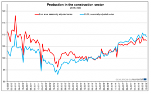 The euro area (EA19) and the EU 28 reported a decrease in the Seasonally adjusted production in the construction sector by 0.4% and by 0.9% respectively during December 2018 compared with November 2018. In addition, According to Eurostat, “In November 2018, production in construction grew by 0.3% in the euro area and by 0.4% in the EU28. In December 2018 compared with December 2017, production in construction increased by 0.7% in the euro area and by 0.5% in the EU28. The average production in construction for the year 2018, compared with 2017, increased by 1.7% in the euro area and by 2.0% in the EU28.”